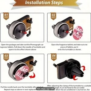 1Player +5pcs refills Retro Record Player Car Air Freshener Auto Perfume Phonograph Air Vent Decoration Clips Interior Accessories Ornament Fragrance Diffuser Scent Source: Paper Scented Tablets Composition: See Product Details Effect: See Product Details Intended Usage: See Product Details Number Of Products: Please Refer To The SKU. Capacity: Not Applicable